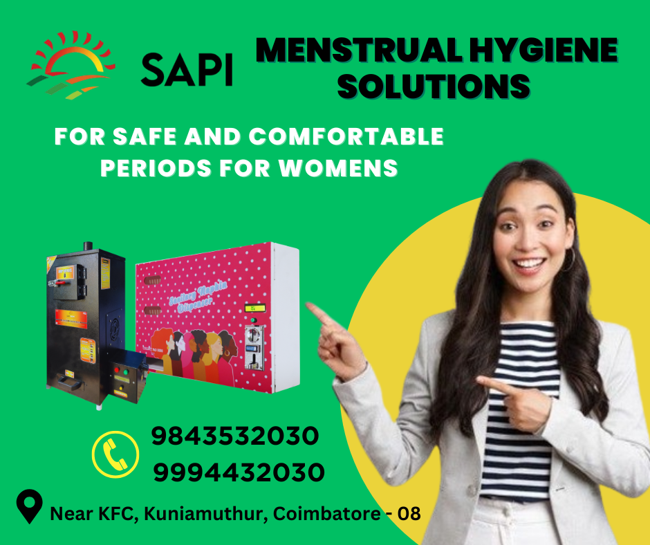 Empowering women with safe, hygienic, and accessible solutions 💜 SAPI VEND & SAPI BURN ensure comfort, dignity, and cleanliness—anytime, anywhere. 📍 Now serving across South India: Coimbatore, Chennai, Madurai, Trichy, Salem, Erode, Tirunelveli, Vellore, Thanjavur, Dindigul, Hosur, Karur, Tiruppur, Nagercoil Also in Bangalore, Mysore, Kochi, Trivandrum, Hyderabad, Vijayawada 💡 Ideal for: Schools | Colleges | Offices | Public Places 📞 Contact: 98435 32030 / 99944 32030 📍 Near KFC, Kuniamuthur, Coimbatore – 08 Let’s build a cleaner & healthier tomorrow for women! ♻️