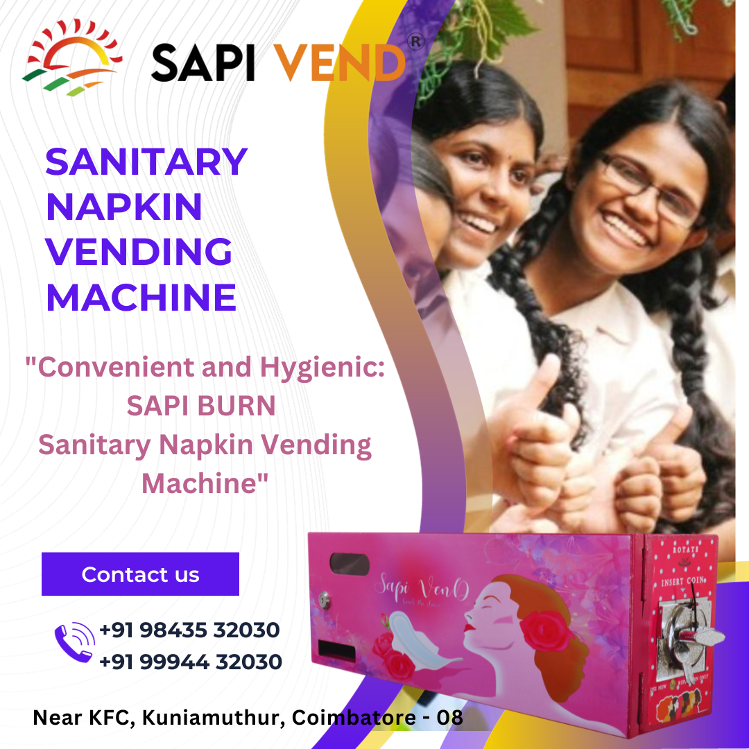 Access to sanitary napkins in restrooms plays an important role in ensuring comfort, hygiene, and confidence for women and girl students. SAPI VEND Sanitary Napkin Vending Machine from Sri Adhava Power Industries provides a simple and reliable solution by making sanitary napkins easily available whenever they are needed. Designed for schools, colleges, offices, hospitals, factories, and public facilities, SAPI VEND offers convenient operation, compact wall-mounted installation, and dependable performance. It helps institutions support better menstrual hygiene management and create a safer environment for women. Installed and serving institutions across Tamil Nadu and Kerala including Coimbatore, Chennai, Madurai, Trichy, Salem, Erode, Tiruppur, Vellore, Tirunelveli, Thanjavur, Nagercoil, Kochi, Thiruvananthapuram, Kozhikode, Thrissur, Palakkad, Kollam, Alappuzha, Kannur, and Kottayam. For enquiries and orders: Sri Adhava Power Industries Near KFC, Kuniamuthur, Coimbatore – 641008 98435 32030 | 99944 32030 www.sriadhavapower.com