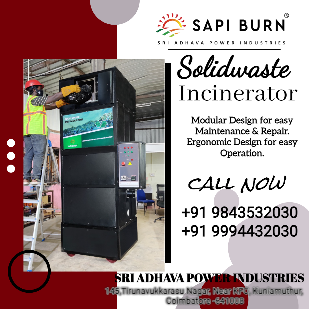 Introducing SAPI BURN Solid Waste Incinerator by Sri Adhava Power Industries β designed for efficient waste disposal with a modular and ergonomic design. β Modular design for easy maintenance & repair β Ergonomic design for simple & safe operation β Ideal for industries, hospitals, institutions & municipalities β Built for long-lasting performance π Successfully supplied across Tamil Nadu: Coimbatore | Chennai | Madurai | Trichy | Salem | Erode | Tiruppur | Hosur | Karur | Namakkal | Dindigul | Thanjavur | Tirunelveli | Vellore π Call Now π± +91 98435 32030 π± +91 99944 32030 π± Letβs move towards cleaner, safer & sustainable waste management. #SolidWasteIncinerator #SAPIBURN #WasteManagement #CleanTamilNadu #IndustrialIncinerator #SriAdhavaPowerIndustries #Coimbatore #Chennai #Madurai #Salem